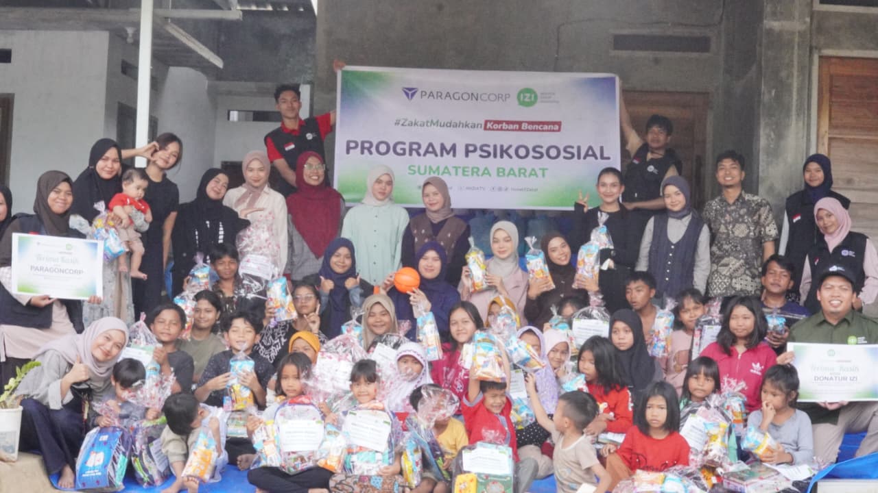 Dalam kegiatan tersebut, IZI Sumatera Barat bersama Paragon Corp menyalurkan 51 paket perlengkapan sekolah yang berisi tas sekolah, alat tulis, dan AlQuran, serta 11 paket perlengkapan balita. Selain penyaluran bantuan, anak-anak juga mengikuti kegiatan psikososial berupa permainan edukatif dan dongeng interaktif.