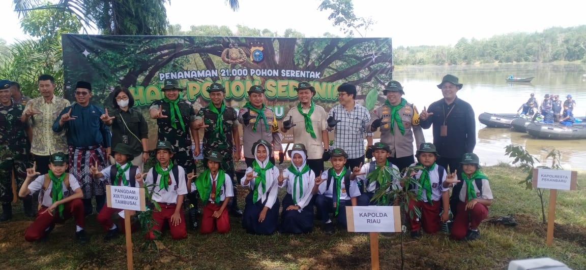 Kapolda mengungkapkan bahwa dalam sepekan terakhir, Polda Riau bersama pemerintah daerah, komunitas lingkungan, pelajar, dan masyarakat telah menanam lebih dari 24.000 pohon di seluruh wilayah Riau, melampaui target awal 21.000 pohon.