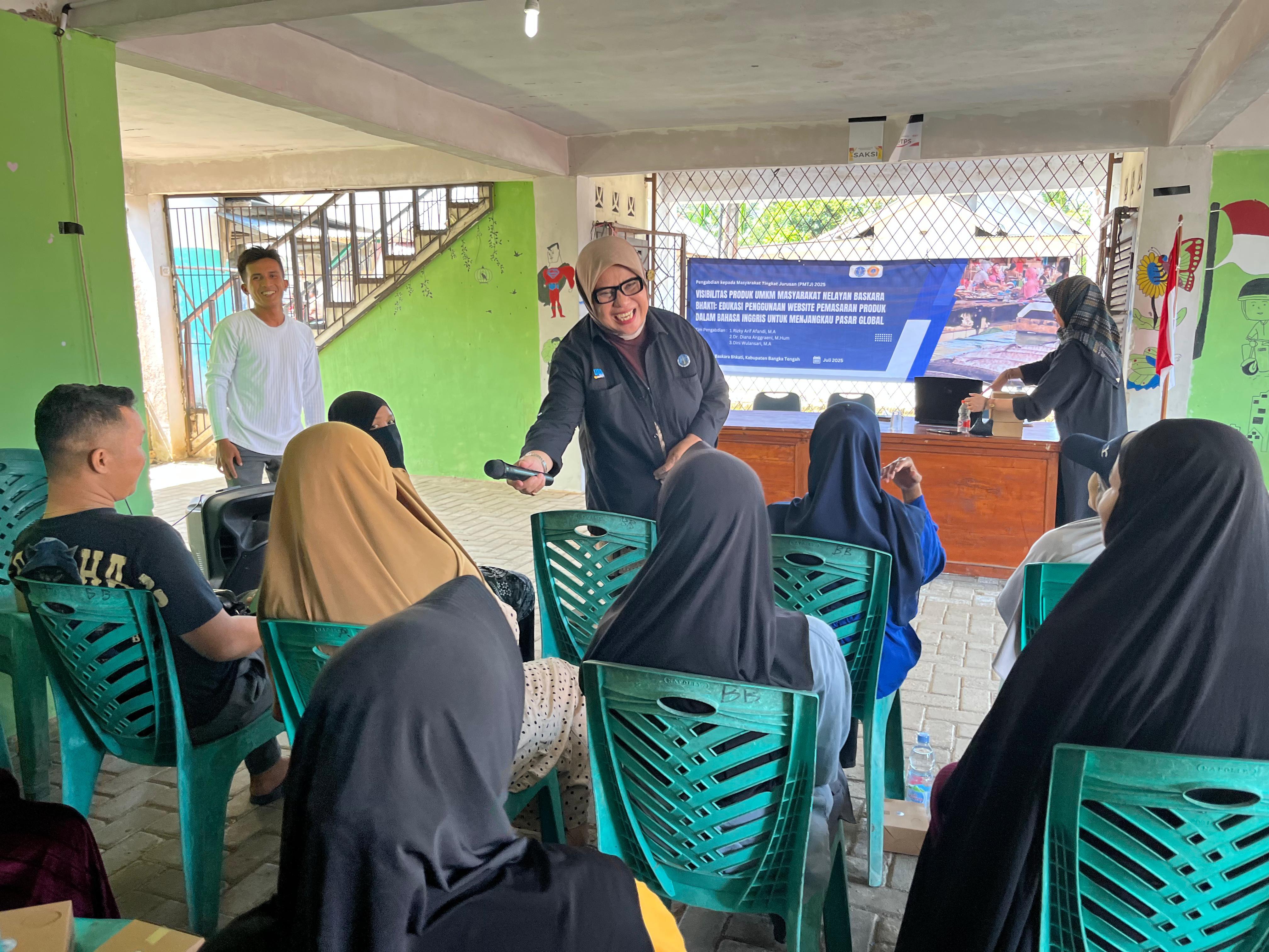 Kegiatan ini merupakan bentuk nyata dari implementasi Tri Dharma Perguruan Tinggi, khususnya dalam bidang pengabdian kepada masyarakat. Tujuannya adalah untuk meningkatkan kemampuan para pelaku UMKM nelayan dalam memasarkan produk mereka melalui media digital dengan pendekatan berbahasa Inggris.