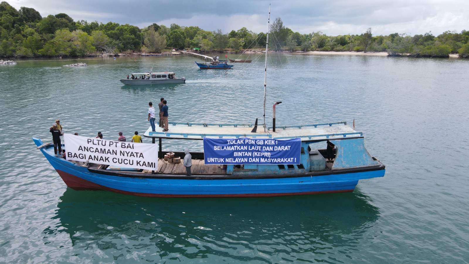 Aksi dilakukan dengan cara unik. Warga dari berbagai kampung berlayar menggunakan kapal menuju lokasi pembangunan di perairan sekitar Pulau Poto hingga ke depan kawasan industri PT Bintan Alumina Indonesia (BAI). Mereka membawa spanduk berisi penolakan, di antaranya bertuliskan “Tolak PSN GBKEK! Selamatkan Laut dan Darat Bintan Untuk Nelayan dan Masyarakat”.